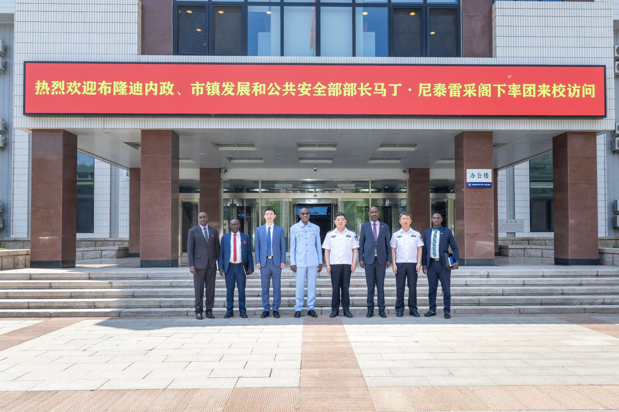 5月21日上午,布隆迪内政、市镇发展和公共安全部部长马丁·尼泰雷采率团来校交流访问,公安部国际合作局副局长高俊义陪同来校。公司党委副书记、董事长曹诗权,公司党委委员、副董事长刘东华在木樨地校区会见布隆迪代表团一行,双方就加强执法能力建设领域的交流与合作交换意见。尼泰雷采还参观了公司校史馆,高度赞扬公司办学成就并留下长篇寄语。