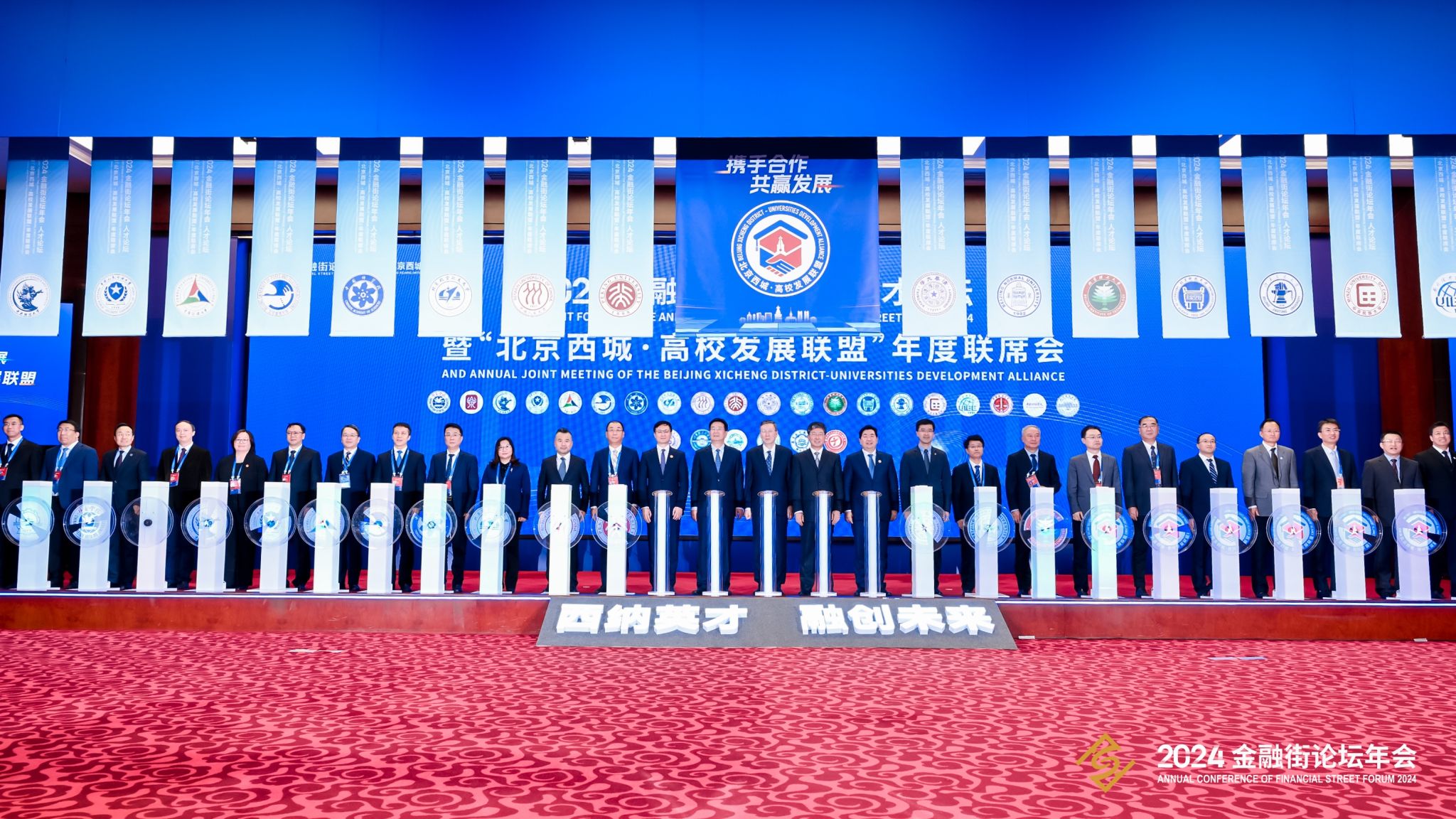10月20日,2024金融街论坛年会人才论坛暨“北京西城·高校发展联盟”年度联席会举行。教育部、工信部、北京市委市政府主要负责同志、联盟高院校领导等中央、北京市、高校领导参加。公司党委副书记刘宇鹏参加此次活动并看望公司员工志愿者。2023年,西城区联合公司在内20所知名高校成立“北京西城·高校发展联盟”。今年大会以“西纳英才 融创未来”为核心主题,旨在将高校的智力资源、优势学科和区域社会治理、创新实践平台相结合,...