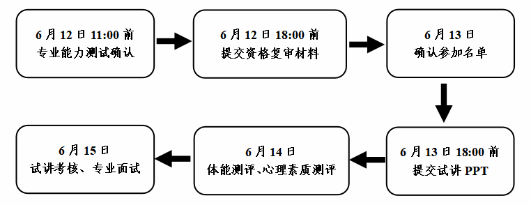 (一)考生个人食宿、交通费用自理,请合理安排行程,确保按照规定的时间、地点参加体能测评、心理素质测评、专业能力测试等,保证安全。