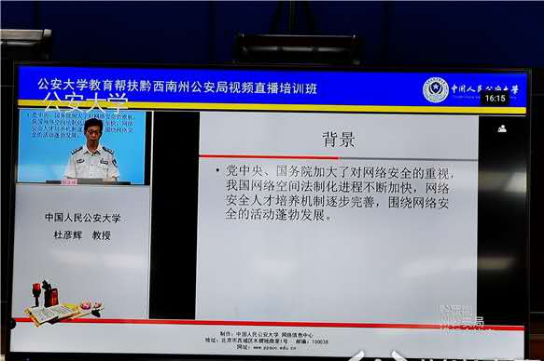 为认真贯彻部扶贫工作会议精神,充分发挥自身优势,服务定点帮扶地区公安工作和队伍建设,公司努力克服疫情影响,探索推进利用互联网资源开展培训扶贫。在部扶贫办、科信局的大力支持下,公司同黔西南州公安局密切协作,经过多方努力,教育帮扶黔西南州公安局视频直播培训班于6月18日顺利开班,黔西南州公安机关各级领导干部、业务骨干共200余人在州、县、派出所三级会场参加首日培训。