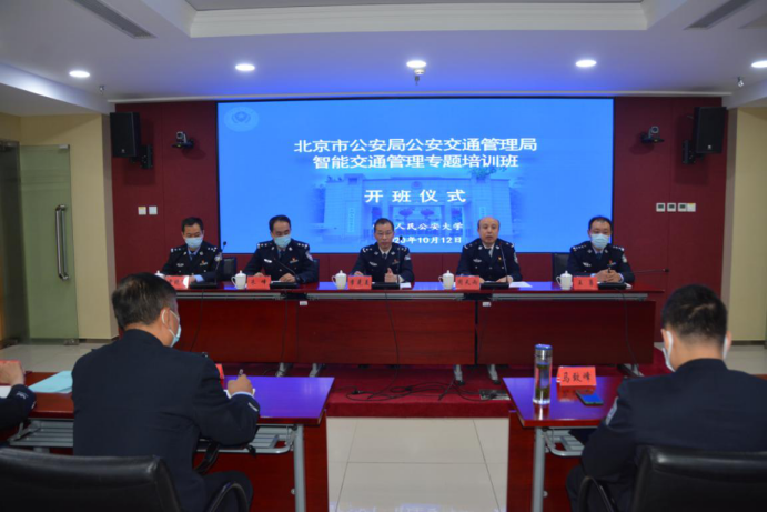 10月12日上午, 北京市公安局公安交通管理局智能交通管理专题培训班开班仪式在公司木樨地校区举行。校进修部主任李克美出席仪式并致辞,北京市交管局党委委员、政治处主任周天雨出席仪式并讲话, 北京市公安局政治部人事训练处科长朱峰主持开班仪式,北京市交管局政治处副主任王勇、北京市交管局科信处副处长曹晓飞和来自北京市交管局的41名学员参加开班仪式。