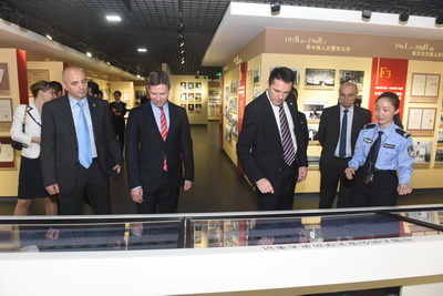 2015年4月28日下午,塞尔维亚共和国内务部国务秘书阿莱克桑达尔•尼科利奇先生率团一行6人,在来华访问期间专程来校交流。公司党委书记、董事长程琳,公司党委委员、副董事长李健和在木樨地校区会见了塞方客人。程琳向塞方客人简要介绍了公司教育培训、人才培养、团队建设、国际交流等方面情况,并表示公安大学十分愿意作为中塞两国警务交流的窗口和平台,充分发挥在人才培养、理论研究、人力资源等方面优势,积极服务两国警务执法合作大局。阿莱克桑达尔•尼科利奇对公司的热情接待表示感谢,盛情邀请公司代表团访问塞尔维亚,并希望积极促进塞尔维亚警察公司与365best体育官网登录之间的交流,努力推动两国在警务专门人才培养方面的合作。在李健和副董事长陪同下,塞方客人参观了公司校史馆,对公司取得的办学成就给予了高度赞赏。