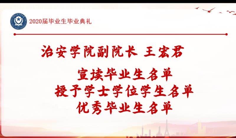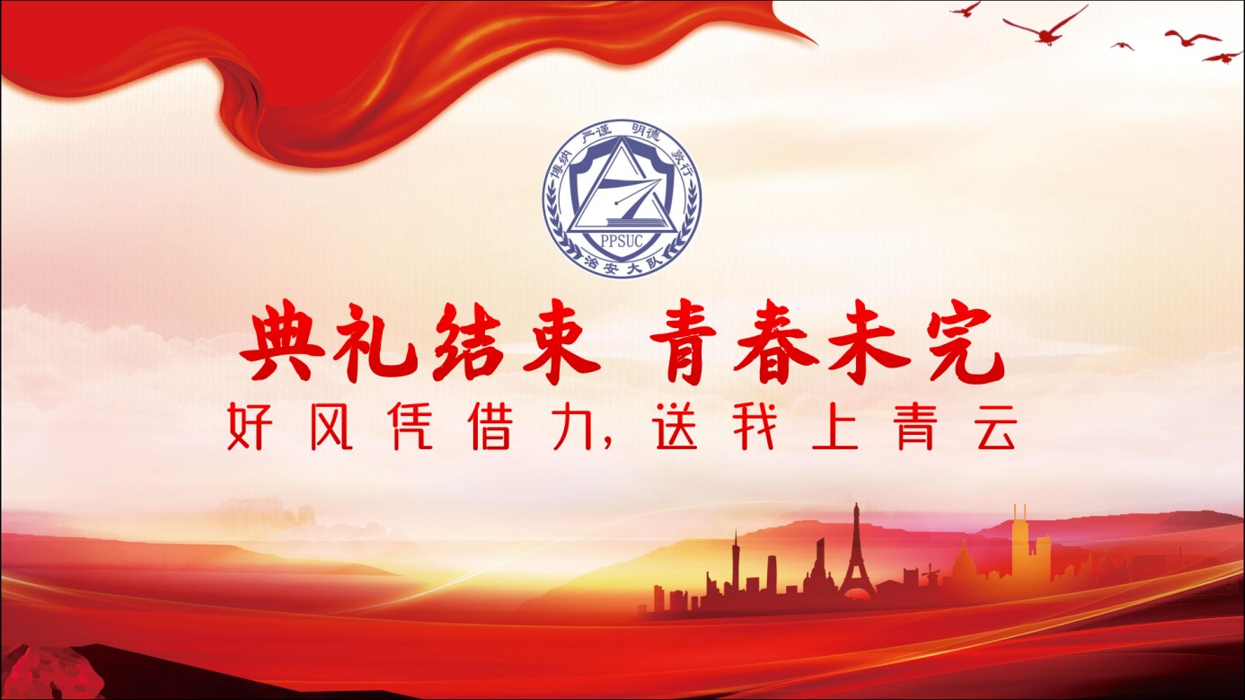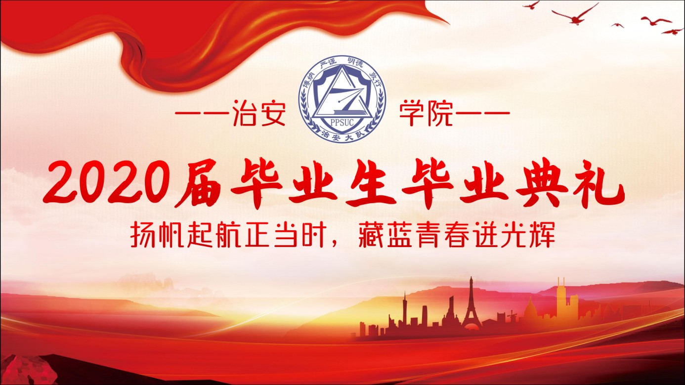 乘风破浪潮头立,扬帆起航正当时。本次毕业典礼是一段征程的结束,见证了同学们上千个日夜的奋斗与成长、进取与梦想,而离别的感伤与不舍终也将化作对未来的向往与期待。这是2020届治安学子在母校的终点,却也是他们人生新旅途的起点,经历了母校四年藏蓝教育的毕业生们,肩上担负着新一代公大人的期盼与希冀,定能承载起人民警察的光荣,不忘初心、砥砺前行,在未来从警道路上守家国底线、护群众安宁、保一方和谐、传一世警魂,谱写公大人的新篇章。