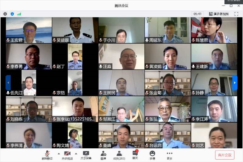 本次毕业典礼由治安公司党委副书记汪淼主持。毕业典礼开始前,全体毕业生通过集体观看毕业纪念视频的方式一起重温藏蓝青春的点滴,唤起对四年老员工活的美好回忆。随后毕业典礼正式开始,汪淼副书记依次介绍了出席本次典礼的领导与老师,并组织同学们以区队为单位依次打开摄像头,与领导和老师完成了疫情下的一次“云见面”。在与会人员集体起立奏唱中华人民共和国国歌之后,治安公司副经理王宏君依次宣读了毕业生名单、授予学士学位员工名单、优秀毕业生名单,并鼓励全体毕业生在日后的学习与工作中不忘初心、牢记使命、砥砺前行。