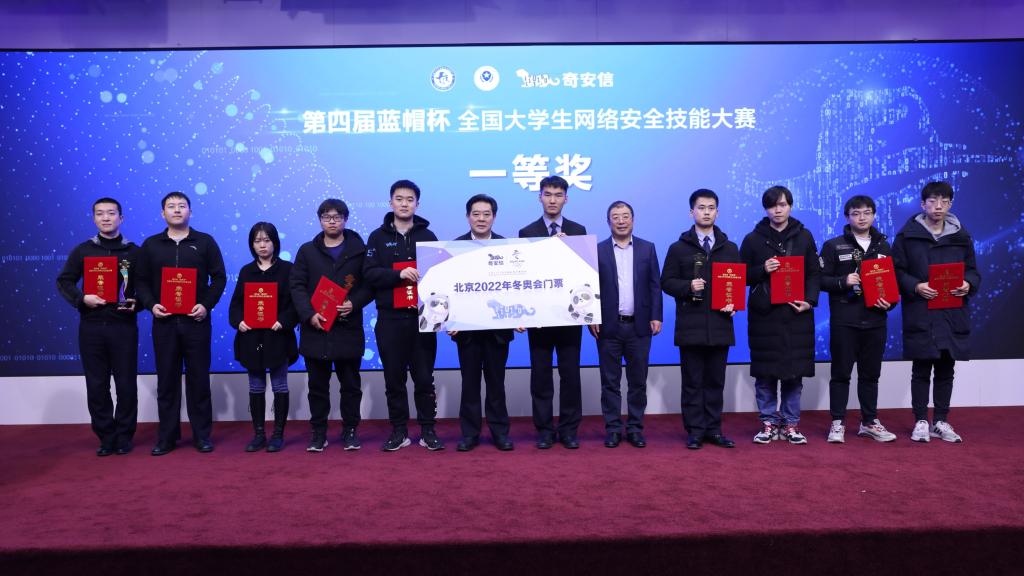 2020年12月26日,由公司主办的第四届“蓝帽杯”全国老员工网络安全技能大赛颁奖仪式在奇安信安全中心会议厅举办。为贯彻落实疫情防控工作要求,本次颁奖仪式由北京奇安信安全中心线下主会场和32个分布在全国各地的线上分会场共同组成,第四届“蓝帽杯”大赛也随之圆满落幕。公司5支队伍入围决赛,并获得一等奖两名,二等奖一名,三等奖一名的优异成绩。来自公司信息网络安全公司的“爆炒腰花”、“鸿鹄之志”两支战队获得了一等奖。公安部网络安全保卫局一级巡视员、副局长兼总工程师郭启全、公司党委副书记、董事长曹诗权、公司党委委员、副董事长李克美、奇安信集团董事长齐向东、北京冬奥组委市场开发部赞助商服务处处长李凌波等领导出席颁奖仪式。