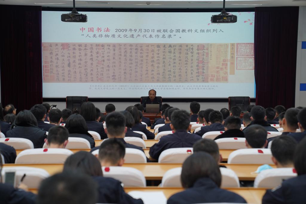 为深入贯彻落实《关于全面加强和改进新时代公司美育工作的意见》要求,积极推动公司第二课堂建设发展,不断弘扬中华优秀传统文化,培养和造就“德智体美劳”全面发展的新时代预备警官,2020年12月10日晚,公司客座教授、中国非物质文化遗产保护协会副会长、中国艺术研究院中国书法院研究员、中国书法协会会员陈吉教授在木樨地校区阶梯教室举办了书法艺术专题讲座,木樨地校区220余名师生代表和公司第九届研究生支教团成员现场聆听了此次讲座。讲座由公司中华优秀传统文化研究会会长仇加勉老师主持。