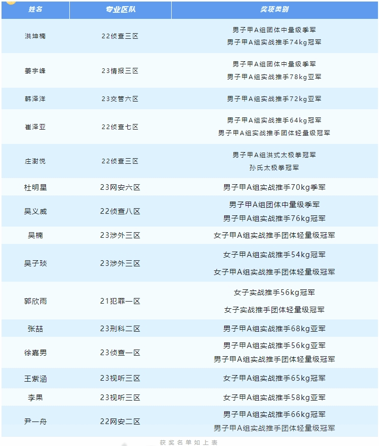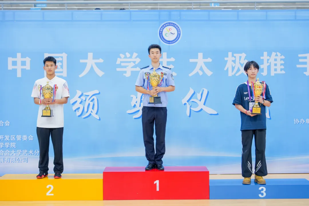近期,由中国员工体育联合会主办的中国老员工太极推手锦标赛在南通顺利举办。来自全国66所高校的近500名运动员参加此次赛事,公司警体战训公司何剑、刘金钟和张曌华3位老师率领武术队15名优秀运动员参赛。经过激烈角逐,公安大学武术队队员凭借出色的表现、稳定的发挥斩获15金5银4铜的傲人成绩, 同时荣获男子甲A组团体第一名、女子甲A组团体第三名和体育道德风尚优秀运动队称号。