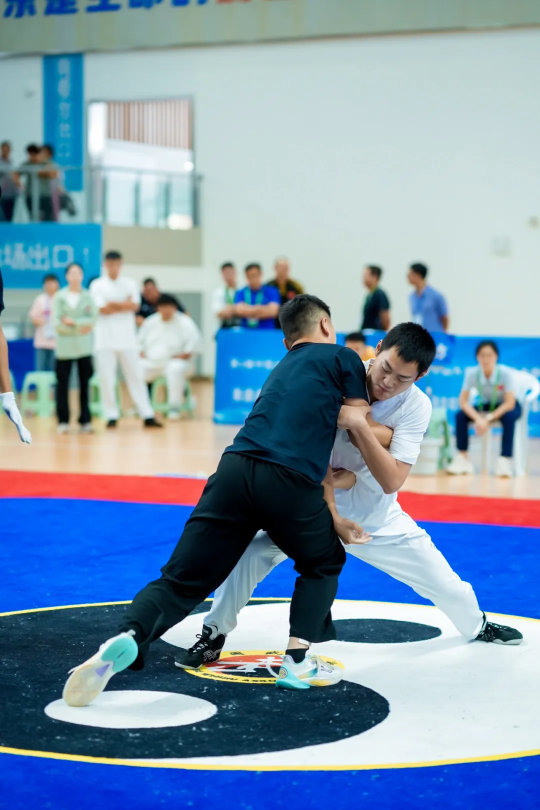 在备赛过程中,三位老师通过不同的训练方式给队员传授了丰富的实战知识和比赛技巧,充分体现了太极推手以柔克刚、动静结合、四两拨千斤的技术特征。以上肢、躯干为攻击部位,保持双腿重心的平衡稳定,太极推手充分运用“掤、捋、挤、按、采、挒、肘、靠”等技法以达到借力、发力的目的,使对方身体失去平衡性。队员通过日复一日的训练,熟练掌握了双按掌、玉女穿梭、野马分鬃等多种有效的进攻技巧,同时针对各种特殊动作的响应处理方式和破解方法做了专项训练。