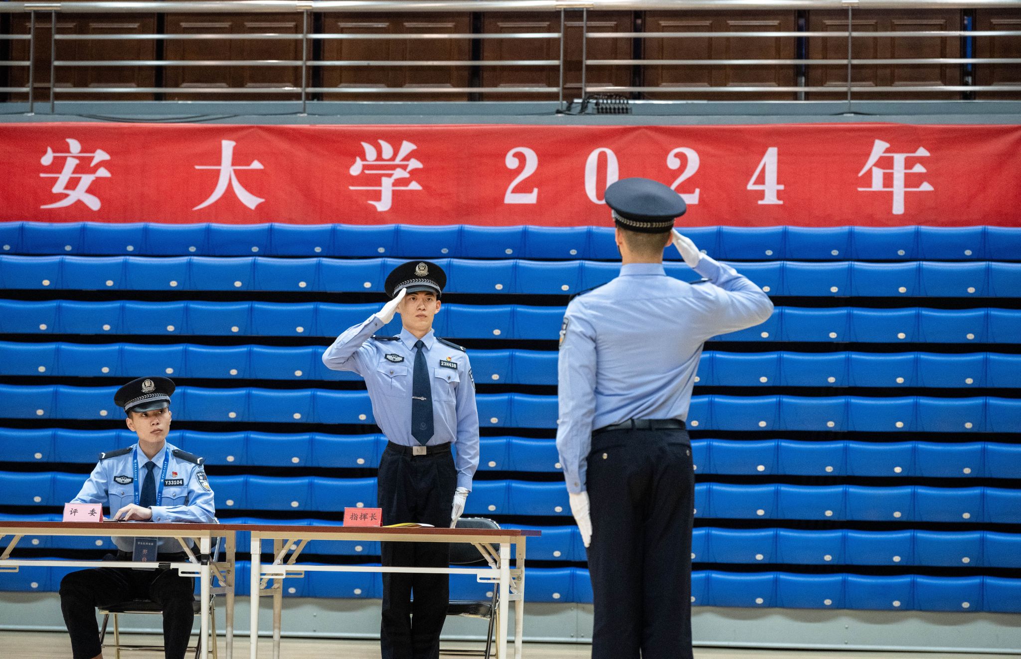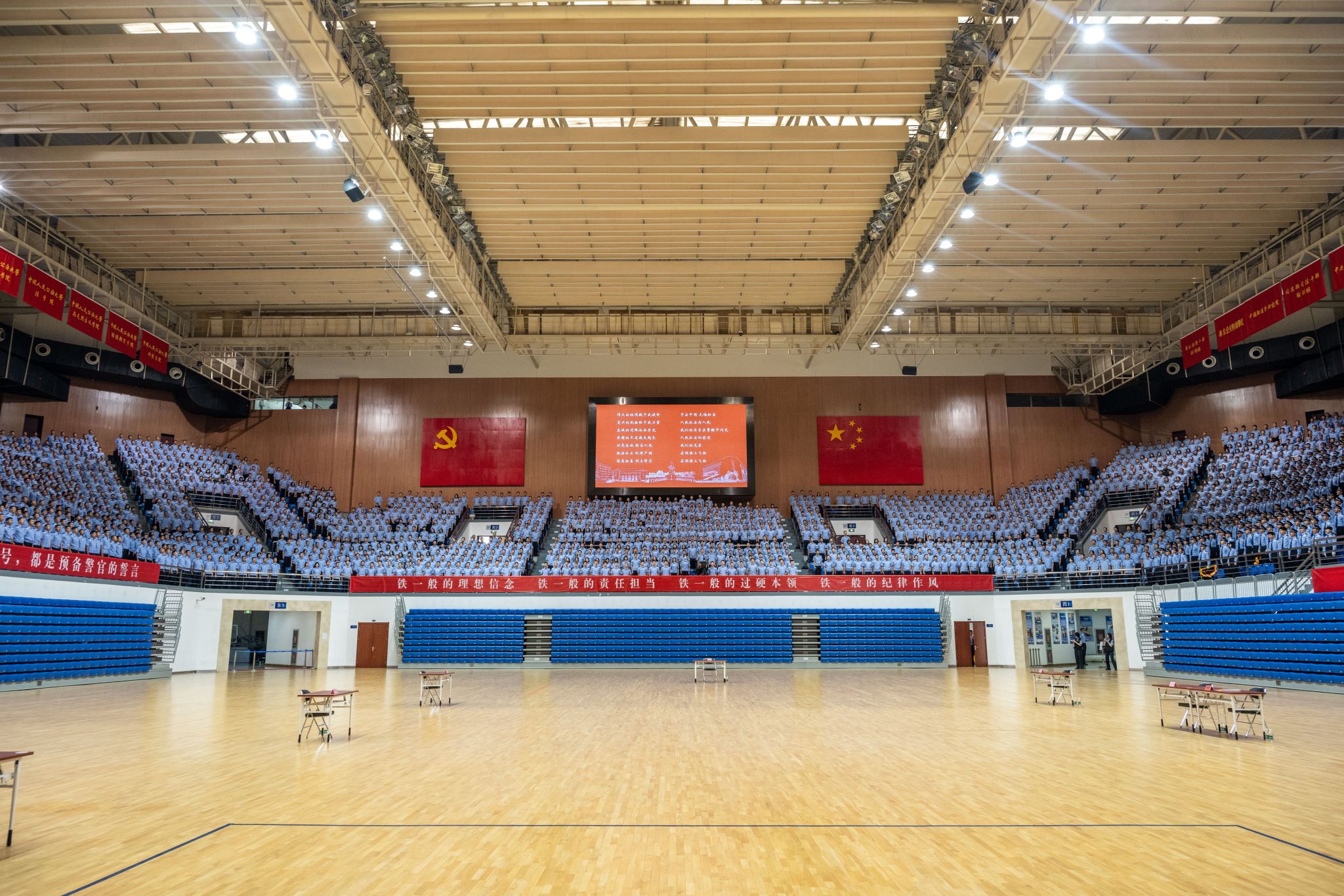 5月25日,365best体育官网登录2024年员工队列会操在团河校区警体综合训练馆举行。公司党委委员、副董事长陈刚出席活动,党委员工工作部、教学公司、本科新生院有关领导,全体本科辅导员和部分来校研修外警观摩会操,2021级、2022级与2023级本科生5000余人参加活动。
