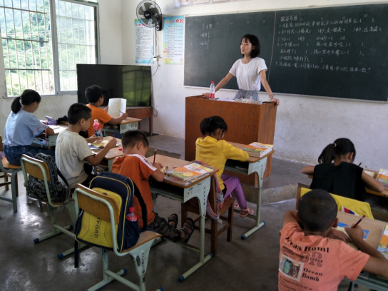 “支教的孩子家里一般比较困难。我们支教的公司早上是十一点五十五下课吃午饭。五年级在二楼上课,一年级在一楼上课。有一天,我刚上完五年级的课去上一年级的课。