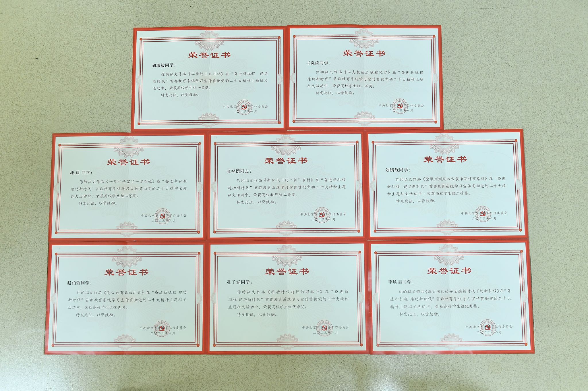 近日,北京市委教育工委公布“奋进新征程,建功新时代”首都教育系统学习宣传贯彻党的二十大精神主题征文活动评选结果,公司8名师生征文作品喜获佳绩: