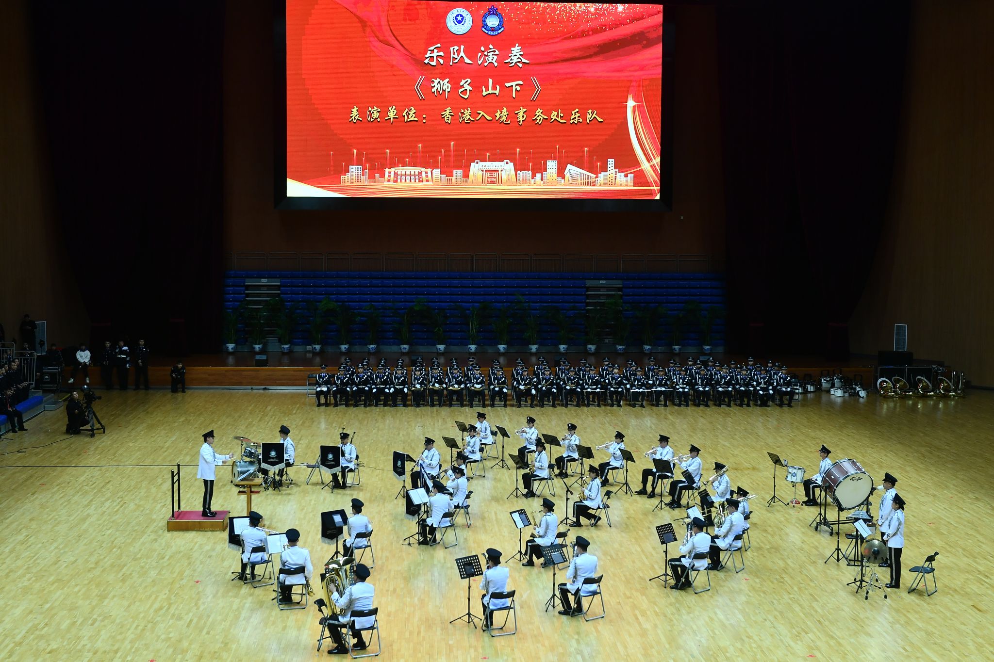 联谊演出活动中,香港入境事务处乐队与公司警乐团分别演奏演了《黄河大合唱》《钢铁洪流进行曲》等爱国歌曲以及《狮子山下》等代表香港精神的乐曲,并共同演奏《我和我的祖国》,充分展现了血脉相融、民心相通、文化相亲的同胞之情。在两支乐队的伴奏下,全场起立合唱《歌唱祖国》,将活动推向高潮。