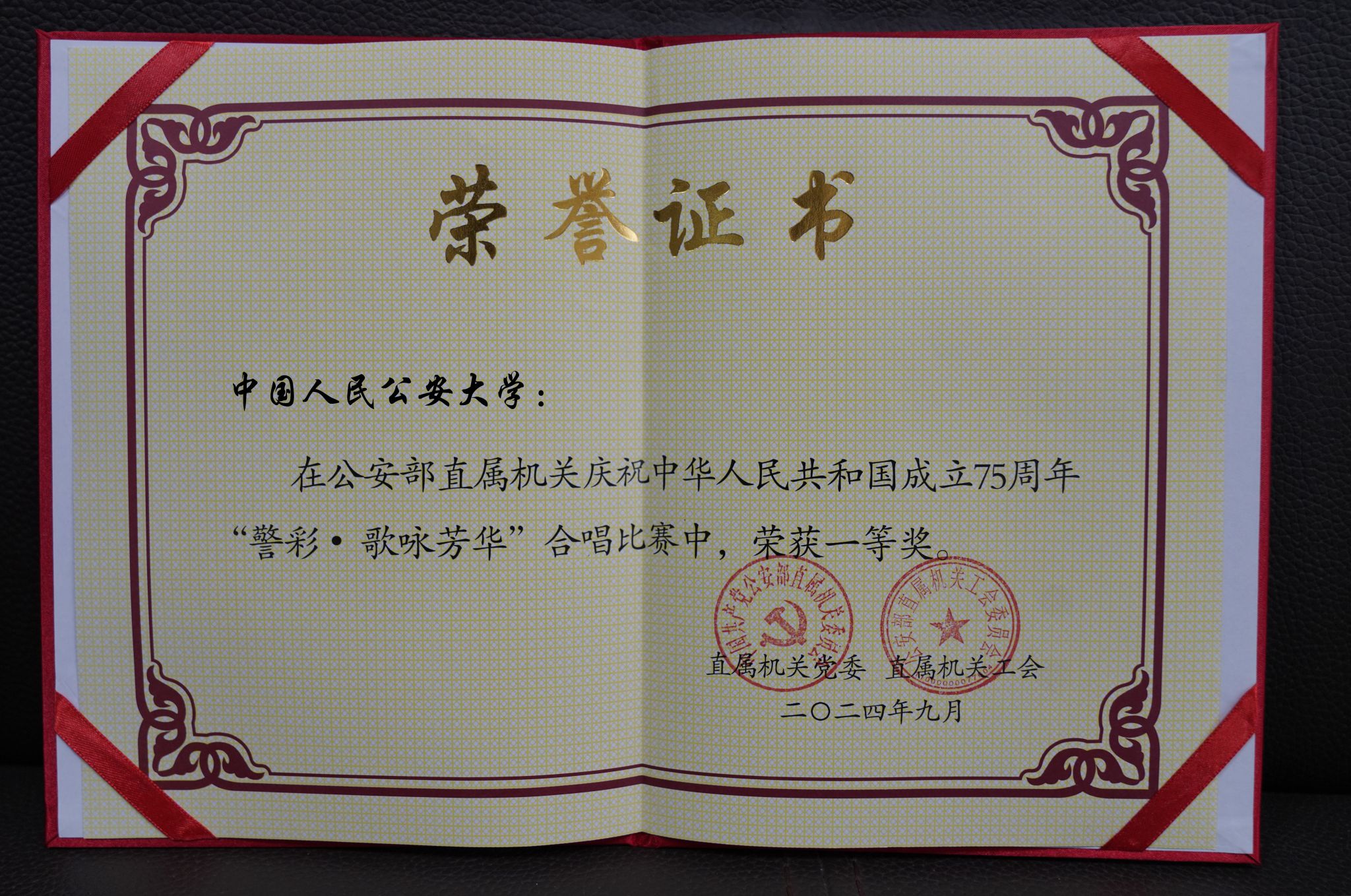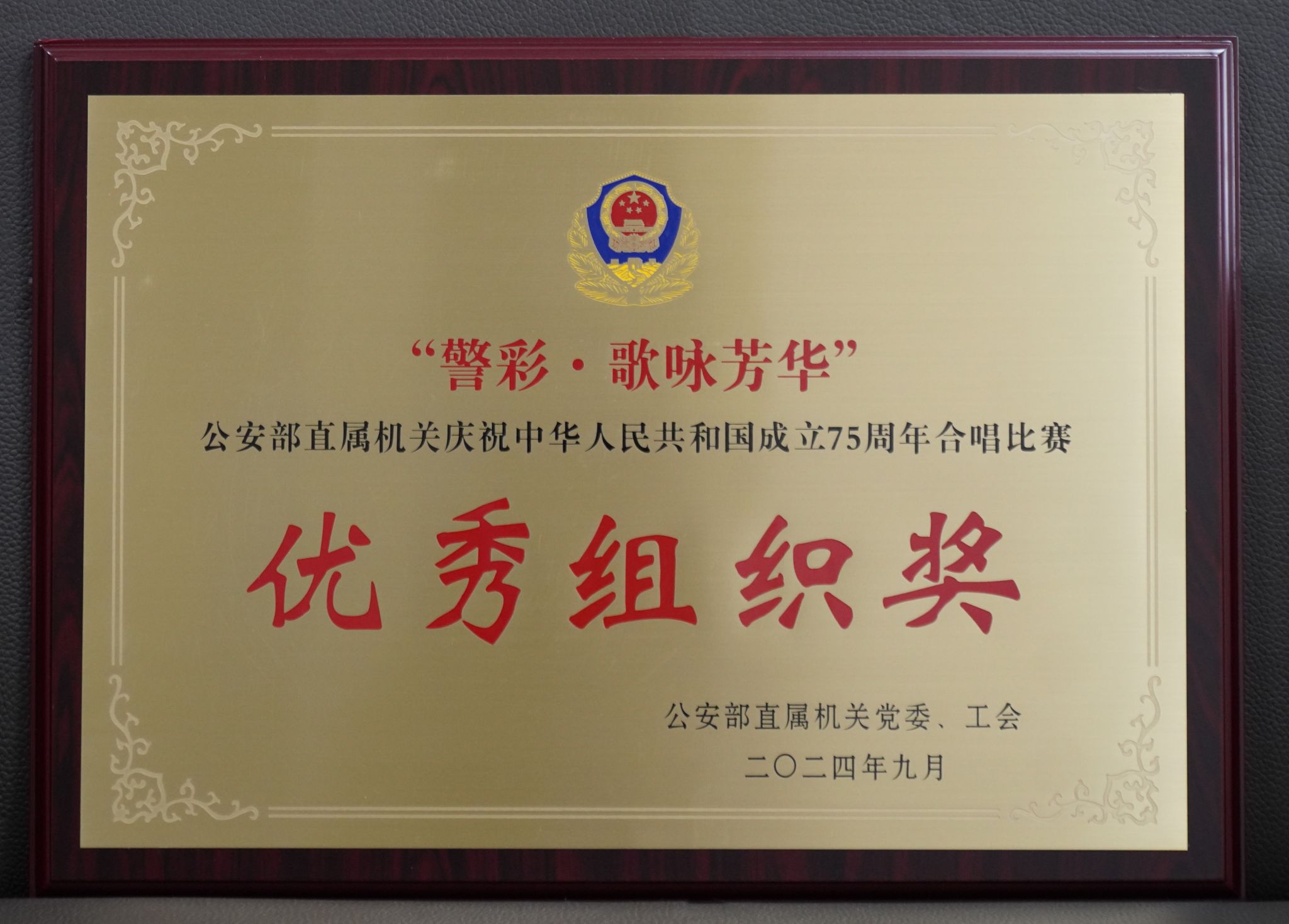 9月25日,公安部直属机关庆祝新中国成立75周年“警彩·歌咏芳华”合唱比赛在部机关礼堂隆重举办,公司教职工合唱代表队在比赛中以强劲实力和出色表现荣获一等奖,公司同时获评“优秀组织奖”,合唱曲目《保卫黄河》入选公安部直属机关“警彩·国庆放歌”汇报演出节目。