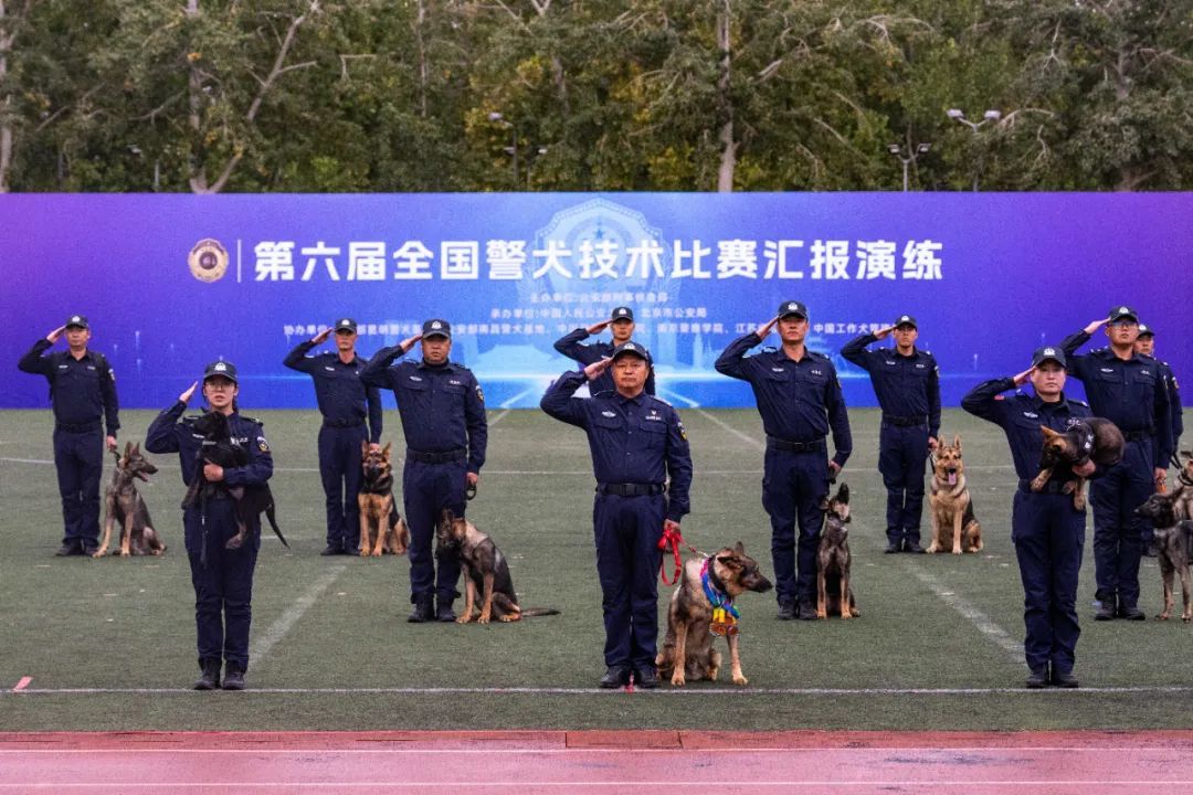 在汇报演练中,公安部昆明警犬基地、南昌警犬基地和北京市公安局、江苏省公安厅、浙江省公安厅、广西壮族自治区公安厅、西藏自治区公安厅以及国家移民管理局8个演练单位,结合实战需求精心编排演练环节,现场演示警犬服从科目、警犬特工队、“人机犬”协同作战以及机器狗等实战应用内容,充分展现了警犬在侦查破案、巡逻防控、缉私搜毒、搜寻救援领域发挥的重要作用。
