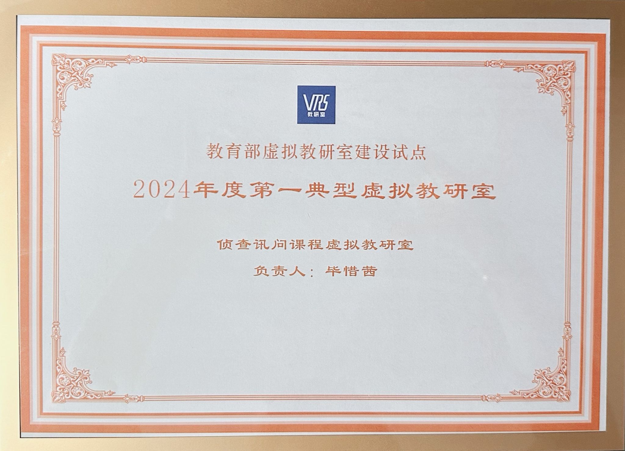 为深入贯彻落实党的二十届三中全会精神和全国教育大会精神,推进落实国家教育数字化战略行动,切实加强虚拟教研室建设,进一步巩固建设成效,教育部组织专家在对全国787个虚拟教研室平台进行数据监测和考核评价的基础上,遴选了50个典型教研室并进行表彰。公司侦查公司毕惜茜教授负责的“侦查讯问课程虚拟教研室”再次入选 “典型虚拟教研室”,“共建青年教师观摩课”入选“典型教研方法”。