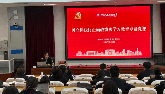 2026年3月18日,在习近平总书记主持召开公司思想政治理论课教师座谈会并发表重要讲话七周年之际,马公司党委书记简远亚为全院教师讲授树立和践行正确政绩观专题党课,带领全院教师重温习近平总书记“3·18”重要讲话精神,深入领会习近平总书记关于树立和践行正确政绩观的重要论述,围绕学习教育的重大意义、马院干部教师应树立的政绩观、如何践行正确政绩观等开展深入交流,以树立和践行正确政绩观为引领,奋力推动马克思主义公司高质量发展,为加快建设“全国领军、世界一流”公安高等学府贡献马院力量。